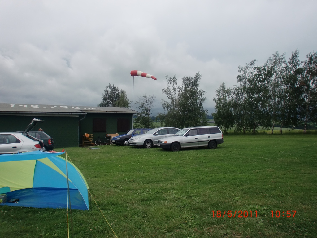 Tato soutěž nezačala pro náš klub zrovna šťastně. Ondra Vinklář při zkušebním letu před soutěží rozbil letadlo. Za letu mu upadla jedna část motýla ze zadní části a éro se zřítilo neovladatelně k zemi. Počasí k nám také nebylo zrovna nejvlídnější - zataženo, foukal vítr v nárazech až 10m/s a občas nás zkropilo pár kapek deště. Ráno to ale vypadalo, že soutěž ani nezačne. V noci totiž vydatně pršelo a ráno kolem 7. hodiny přešla sem tam nějaká přeháňka a stále zataženo. Předpověď na tento den nic moc.
